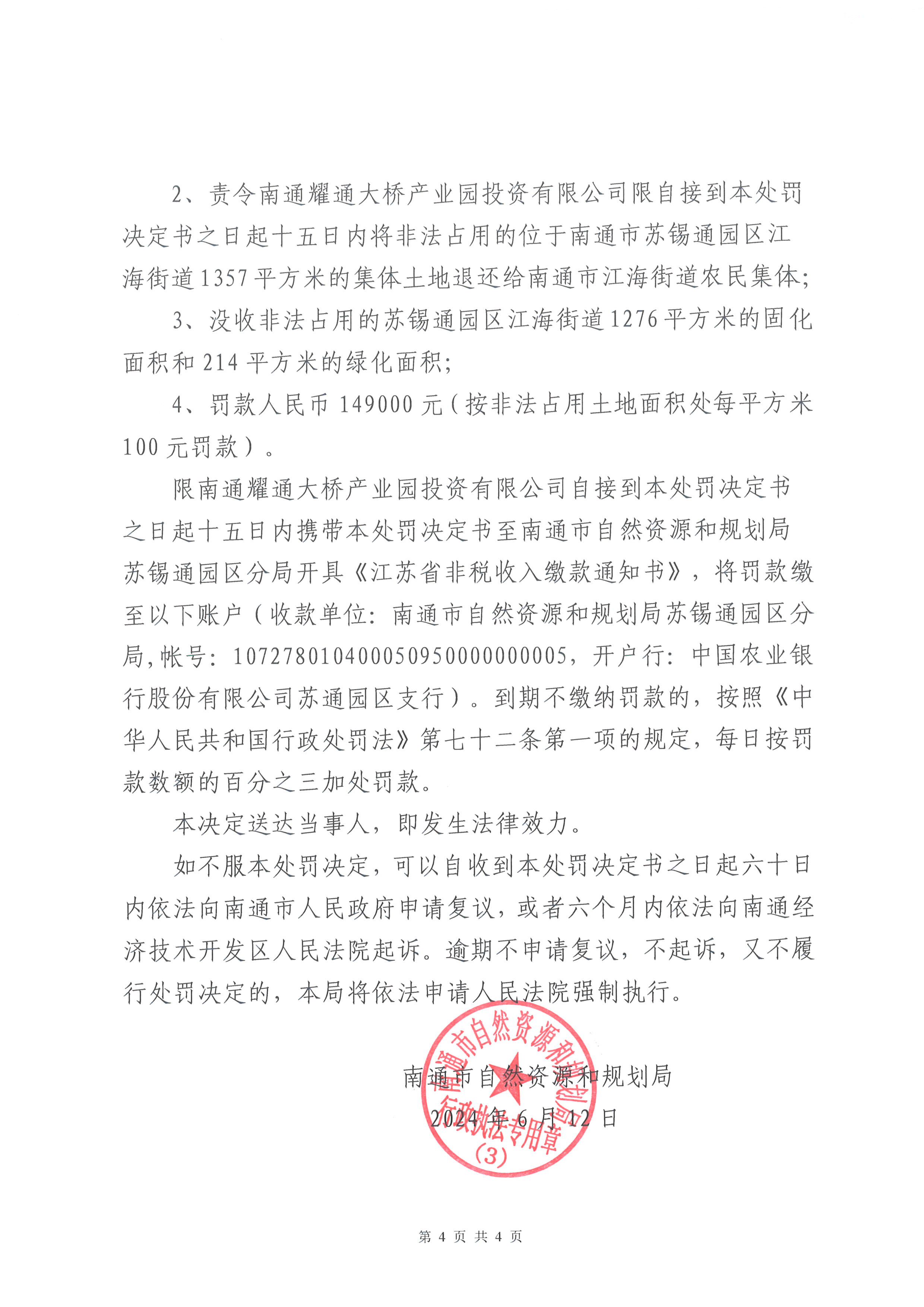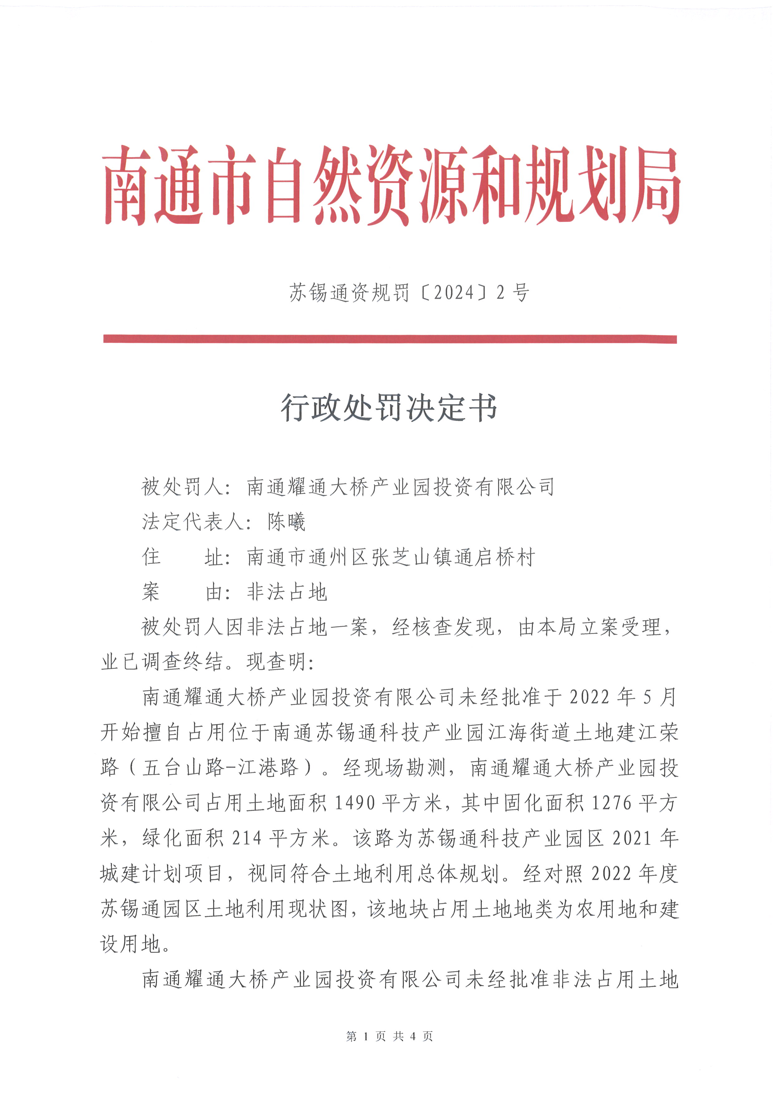 南通市自然资源和规划局行政处罚决定书-苏锡通资规罚[2024]2号